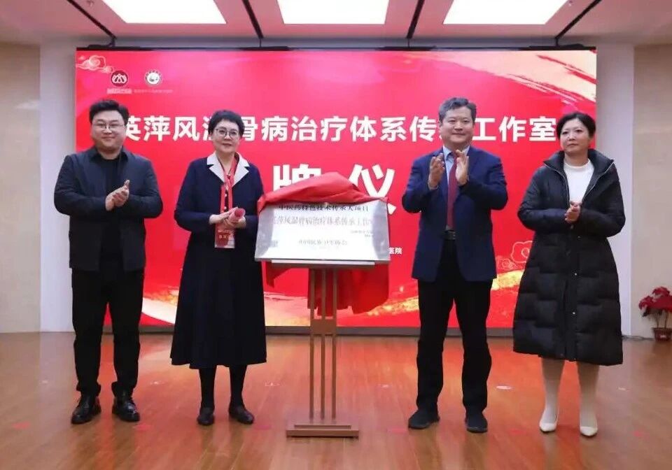 吴英萍教授、高广明书记、张育铭主任、刘明惠主任共同为“英萍风湿骨病治疗体系传承工作室”揭牌